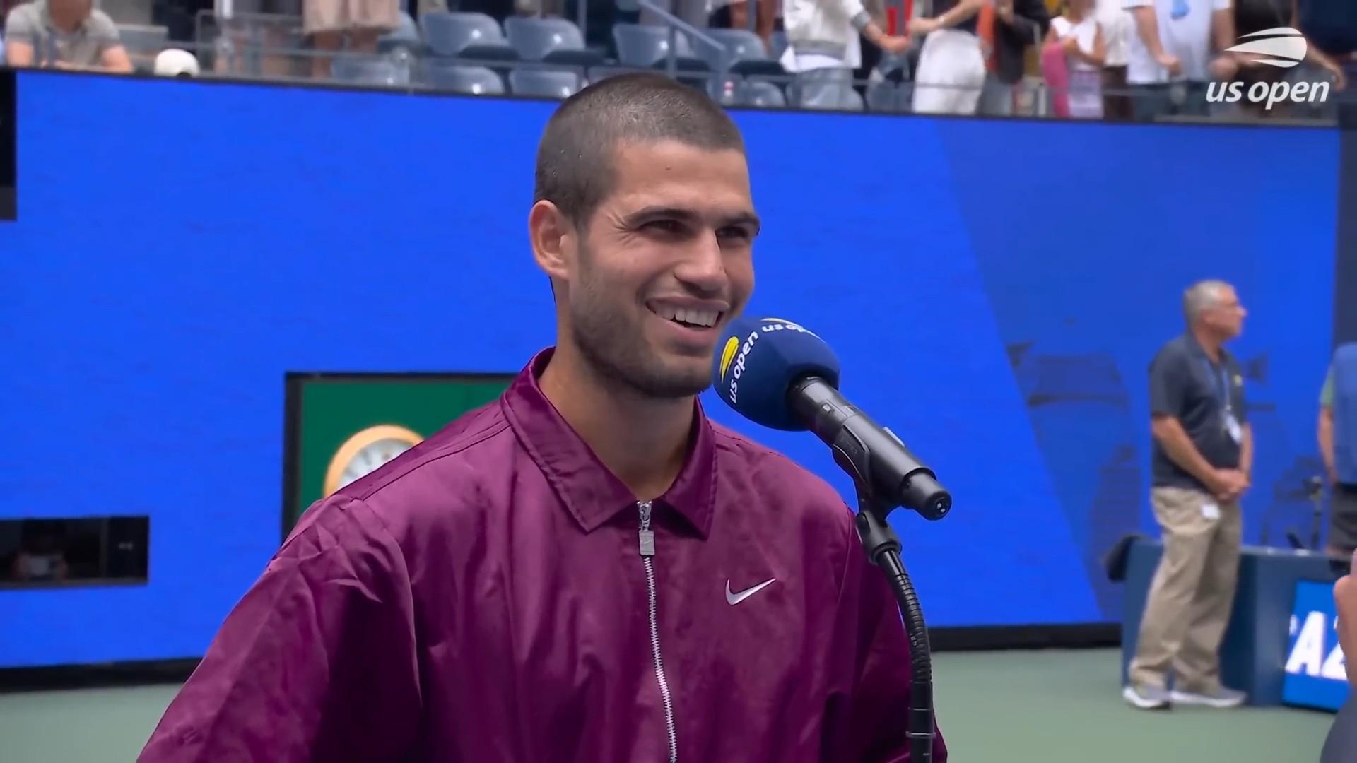 在美网男单1/4决赛3-0击败莱赫卡之后,阿尔卡拉斯接受了采访。